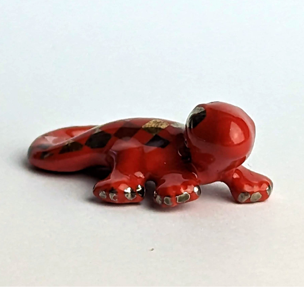 Mit nur 2 cm Größe ist diese Miniatur der perfekte Hingucker auf jedem Regal oder Schreibtisch. Der Rücken des Gekkos ist geschmückt mit leuchtenden quadratischen Flecken in verschiedenen Goldtönen, die jede Bewegung des Tieres betonen. Das macht diese Figur zu einem echten Unikat.