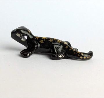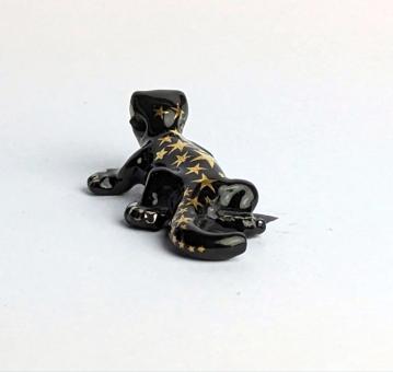 Gekkos sind nicht nur nachtaktive Echsen, die man oft in tropischen Regionen findet, sondern auch sehr faszinierende Tiere. Sie haben die Fähigkeit zu klettern und ihre Hautfarbe an die Umgebung anzupassen. Unsere Figur zeigt einen Gekko in tiefem Schwarz mit goldenen Sternen, die ihm einen besonderen Charme verleihen.