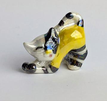 Die handbemalte Keramikfigur in der Form einer Katze ist ein besonderes und charmantes Kunstwerk, das jeder Sammler und Katzenliebhaber in seinem Zuhause haben sollte. Mit einer Größe von nur 2 cm ist diese Figur klein und zierlich, aber dennoch voller Details und Charakter.