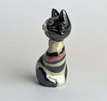 Die handbemalte Keramikfigur in der Form einer Katze ist ein besonderes und charmantes Kunstwerk, das jeder Sammler und Katzenliebhaber in seinem Zuhause haben sollte. Mit einer Größe von nur 2 cm ist diese Figur klein und zierlich, aber dennoch voller Details und Charakter.