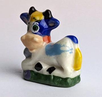 Erleben Sie die Schönheit der Natur mit unserer künstlerisch liebevoll handbemalten Keramikfigur einer sitzenden Kuh. Mit einer Größe von nur 2 cm ist sie das perfekte Accessoire für jeden Wohnraum oder Schreibtisch.