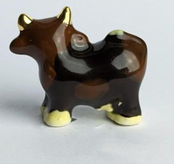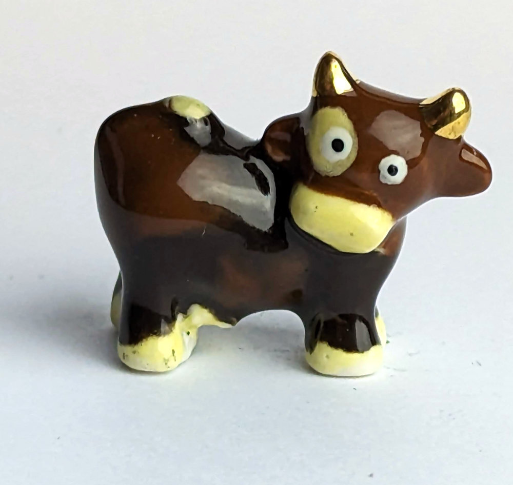 Sie suchen nach etwas wirklich Besonderem für Ihre Sammlung? Dann ist unsere handbemalte, goldene Keramikkuh mit verrücktem Blick genau das Richtige für Sie! Mit einer Größe von nur 2 cm und in den Farben braun und dunkelbraun, ist sie der ultimative Hingucker in jedem Raum.