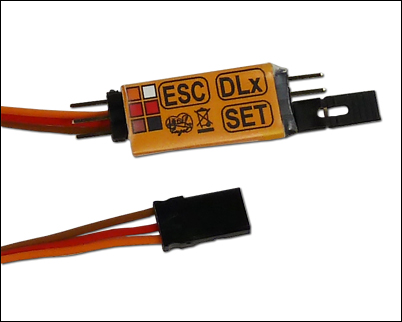 Dieser kleine Baustein ermöglich dem DLx2 sowie LRpro nun auch die automatische Rückwärtsfahrterkennung in Kombination mit bürstenlosen (brushless) Motoren. Hierzu wird der Baustein einfach zwischen Fahrtenregler und Empfänger gesteckt. Die beiden Ausgänge am Schaltbaustein werden mit dem DLx2 verbunden. Fertig.