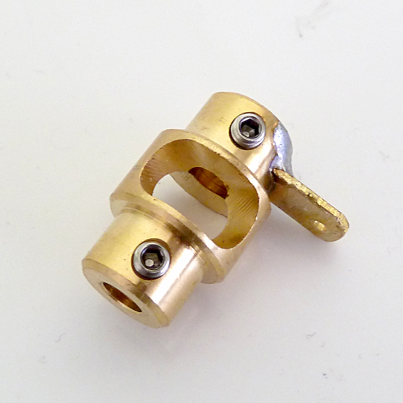 Schwenkkupplung aus Messing für Ruderwelle 4 mm.
