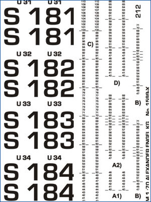 Wasserstandsmarken als WEISSE Wasserschiebebilder für U-Bootmodell AKULA II (Nr. 2000).