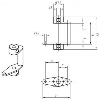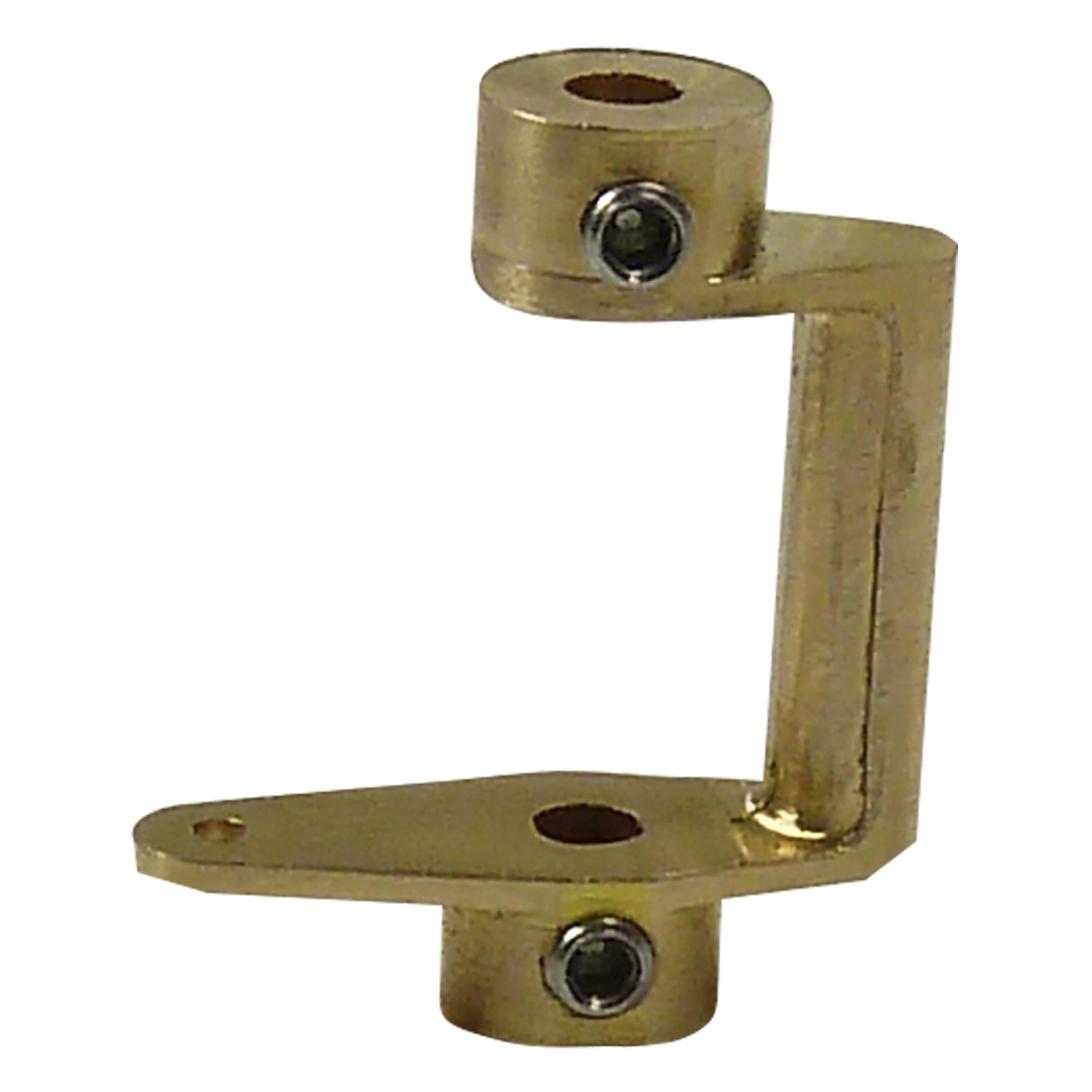 Stabiler Ruderhebel aus Messingguss, mit Bohrungen 3H7 zur Aufnahme von 3 mm Ruderwellen. Komplett mit VA-Gewindestiften M3x3 mm.