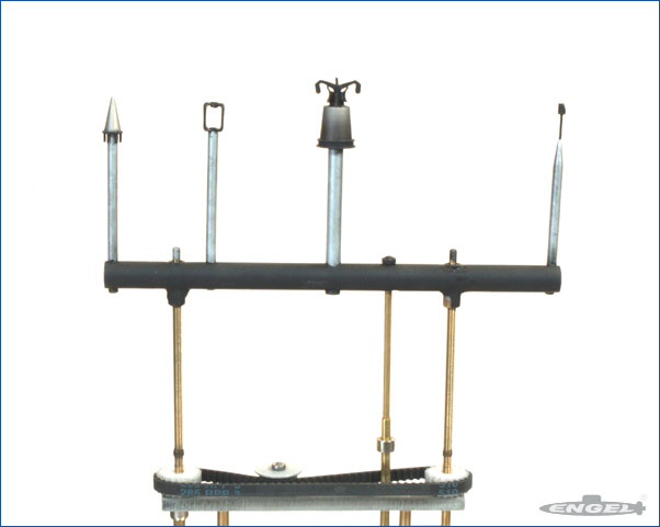 Der Bausatz enthält den fertig verlöteten Schlitten, die Bauteile für die Attrappen des Periskops, Antennen etc. sowie aller zum Einbau erforderlichen Kleinteile einschl. Antriebsteile und Elektromotor.