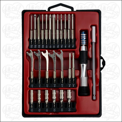 27-teiliger Werkzeugsatz mit Präzisionswerkzeugeinsätzen für kleine Muttern und Schrauben.