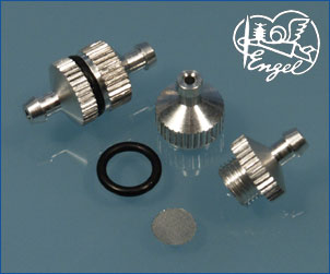 Filter mit 2-teiligem Alumium-Gehäuse, feinmaschigem, korrosionsbeständigem (Edelstahl) Filtersieb.