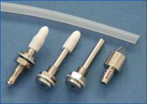 Komplett mit vernickelten Anschlussstutzen, Tanknippel und Tankpendel sowie Muttern M5, U-Scheiben, Verschlusskappen und Kraftstoff-Schlauch (nur für Methanol-Kraftstoff geeignet).