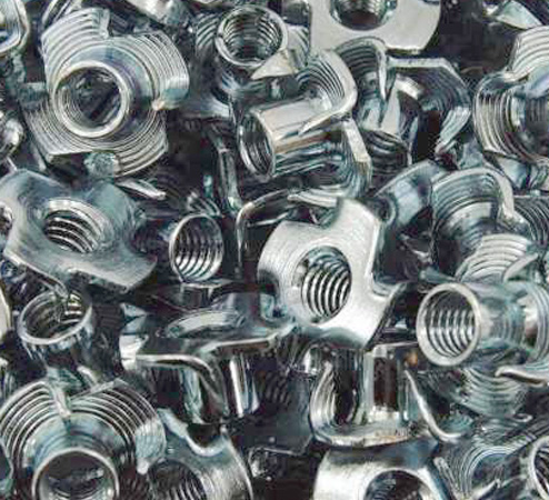 Einschlagmutter (auch Zackenmutter genannt) aus verzinktem Stahl.